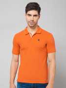 CANTABIL Solid Men Polo Neck Orange T-Shirt