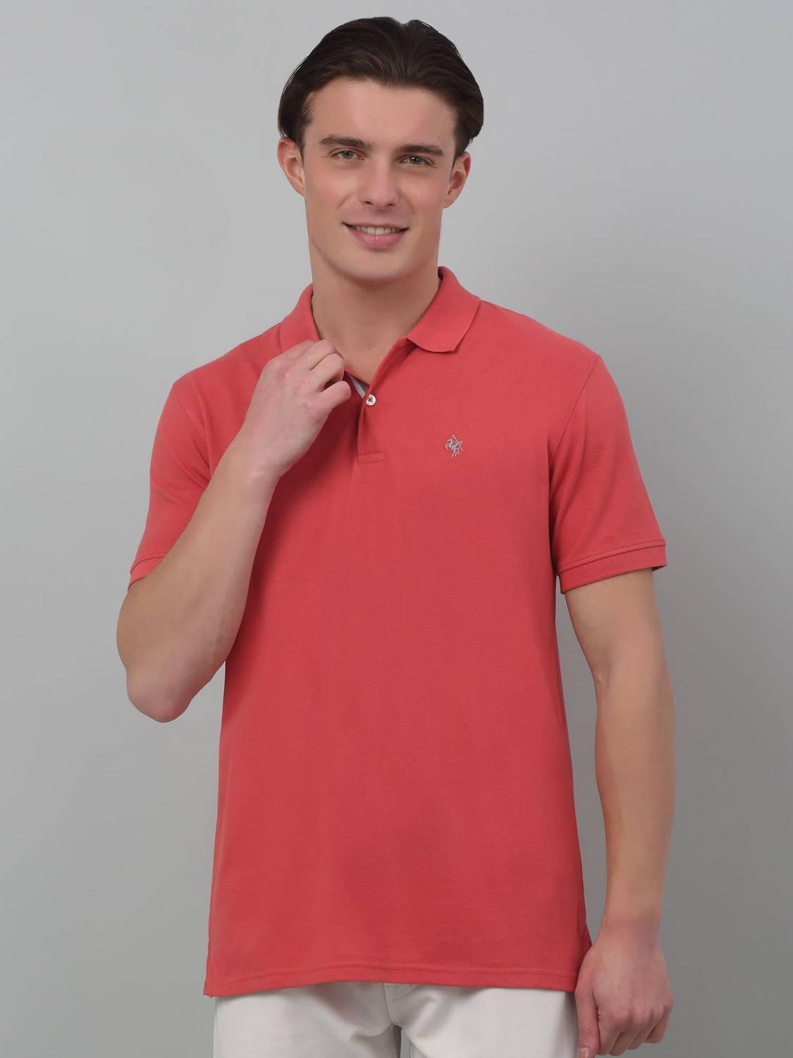 CANTABIL Solid Men Polo Neck Pink T-Shirt