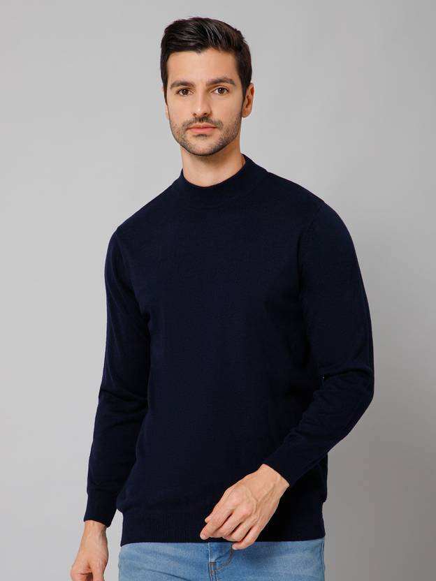 CANTABIL Solid Round Neck Casual Men Blue Sweater