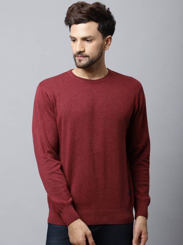 CANTABIL Solid Round Neck Casual Men Maroon Sweater