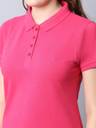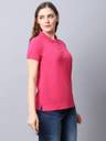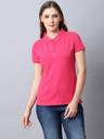 CANTABIL Solid Women Polo Neck Pink T-Shirt