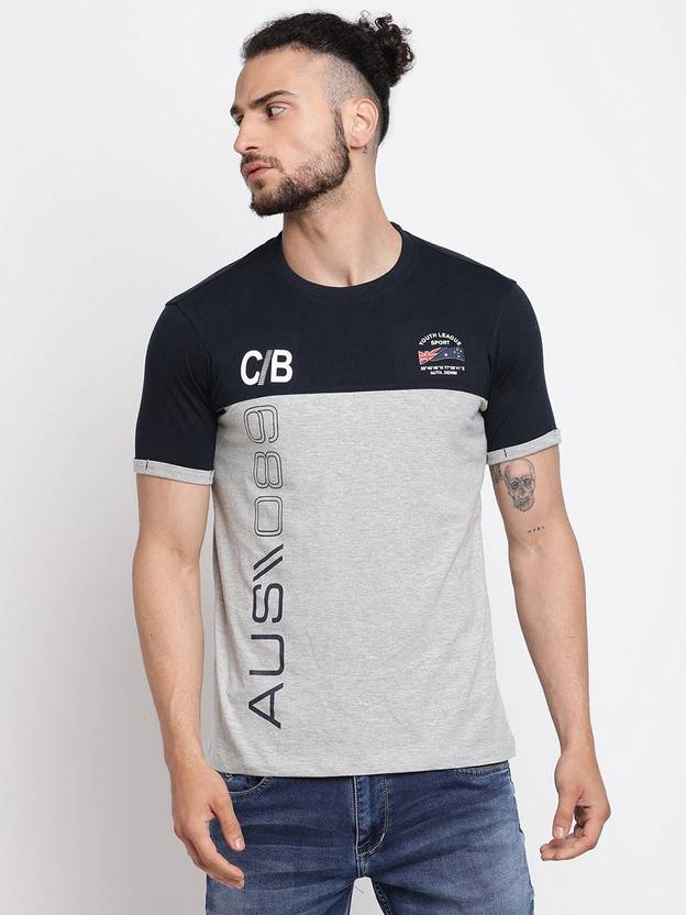 CANTABIL Typography Men Round Neck Grey, Navy Blue T-Shirt