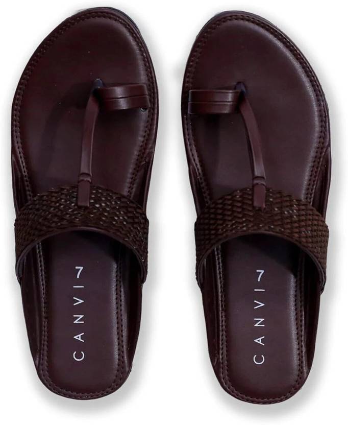 The Kolhapuri's Chappals will grow on the foot as it is tight initially but it has the tendency to expand upon regular usage. If the Kolhapuri Chappal is too tight wrap paper on it. This will make the leather soft and the chappal takes the shape of your foot. Step into tradition with Canvi’s Men's Kolhapuri Chappal, thoughtfully crafted to reflect the essence of Kolhapur’s rich artisan heritage. This handcrafted sandal features a genuine leather upper and a dual‑tone woven strap that blends cultural authenticity with contemporary style. Designed for comfort with a cushioned footbed and anti‑slip sole, it's your go‑to for festive gatherings or everyday ethnic wear.Inspired by the traditional craftsmanship of Kolhapur, Maharashtra, each pair carries the pride and legacy of regional artisans. Pair it with your favorite kurta‑pajama or denim—it’s a statement of elegance and cultural pride.