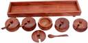 Wooden Masala or Spice Jar for kitchen / Masala Dani with 5 Containers & 5 Spoons