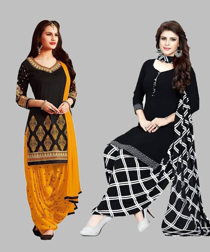 Womens Crepe Printed Unstiched Dress Material. Add style to your Daily Wear Collection with this Printed Dress material Salwar suit. 2 Unstitched Salwar, 2 Unstitched Top, 2 Dupatta.Top & Bottom Fabric : American Crepe, Dupatta Fabric : Martina You can use it for daily wear purpose it will give you immense comfort and fresh styling look.