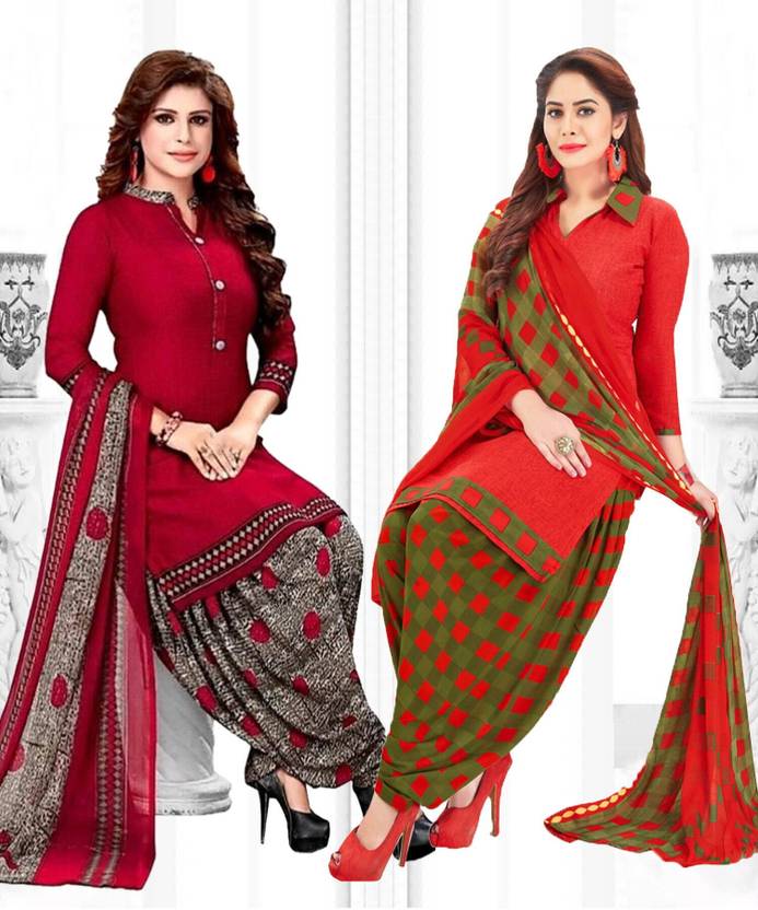Womens Crepe Printed Unstiched Dress Material. Add style to your Daily Wear Collection with this Printed Dress material Salwar suit. 2 Unstitched Salwar, 2 Unstitched Top, 2 Dupatta.Top & Bottom Fabric : American Crepe, Dupatta Fabric : Martina You can use it for daily wear purpose it will give you immense comfort and fresh styling look.