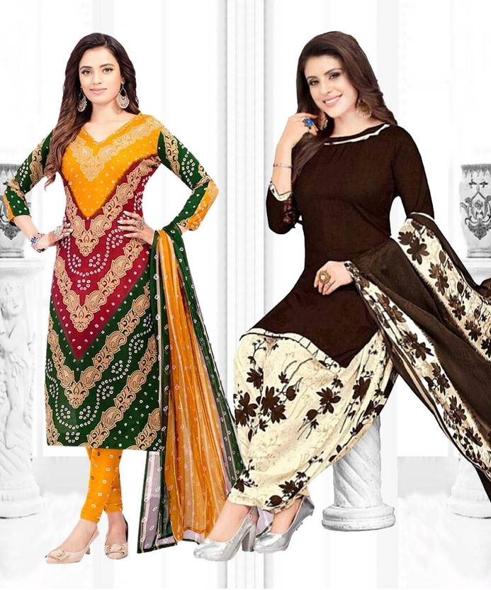 Crepe Printed Unstiched Dress Material. Add style to your Daily Wear Collection with this Printed Dress material Salwar suit. Two Unstitched Salwar, Two Unstitched Top, Two Dupatta.Top & Bottom Fabric : American Crepe, Dupatta Fabric : Martina You can use it for daily wear purpose it will give you immense comfort and fresh styling look.