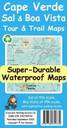 For your best adventures, use the best maps. Water-proof, split-proof, tear-proof, adventure-proof. Sal and Boa Vista Tour & Trail Super-Durable Maps are simply the toughest, most accurate, easy to read, easy to use maps of these two islands that you can buy at any price. A large 840mm by 690mm double sided map sheet has Sal at 1:40,000 scale on the cover side, with Boa Vista at 1:45,000 scale on the reverse. There are also street plans of Espargos, Santa Maria (Sal) and Sal Rei (Boa Vista) at 1:10,000 scale. Our special concertina map fold makes our map easy to open and easy to refold to its 230mm by 120mm pocket size. Our legendary 'Tour & Trail' level of detail ranges from major roads to secondary roads to minor roads to streets and narrow country roads, plus dirt roads, tracks and walking trails. Altitude shading each 100 metres is designed to clearly show the altitude range when travelling across the island by car or on foot. 20 metre and 100 metre contours combined with altitude shading bring these beautiful landscapes to life. There are plenty of individual height points and all of the official 'Trig' points are on the maps. Tour & Trail attention to detail includes our useful symbol range including viewpoints, petrol stations, bar/restaurants and parking areas where you can pull off the road safely. You will easily identify springs, caves, sports grounds, cemeteries, churches, chapels, lighthouses, corrals, wind turbines, hotels, sand dunes etc. Published walking routes are highlighted on the maps. It all adds up to the most detailed and most durable maps of Sal and Boa Vista that you can buy anywhere. 'Super-Durable' means a waterproof, tear-proof, map that can take the roughest treatment and still folds up like new after your adventures. Super-Durable Maps come with a 2 year adventurous use 'Wear and Tear' guarantee. Digital editions of our Sal and Boa Vista Tour and Trail Maps are available for phone apps and Garmin users on our Discovery Walking Guides website.