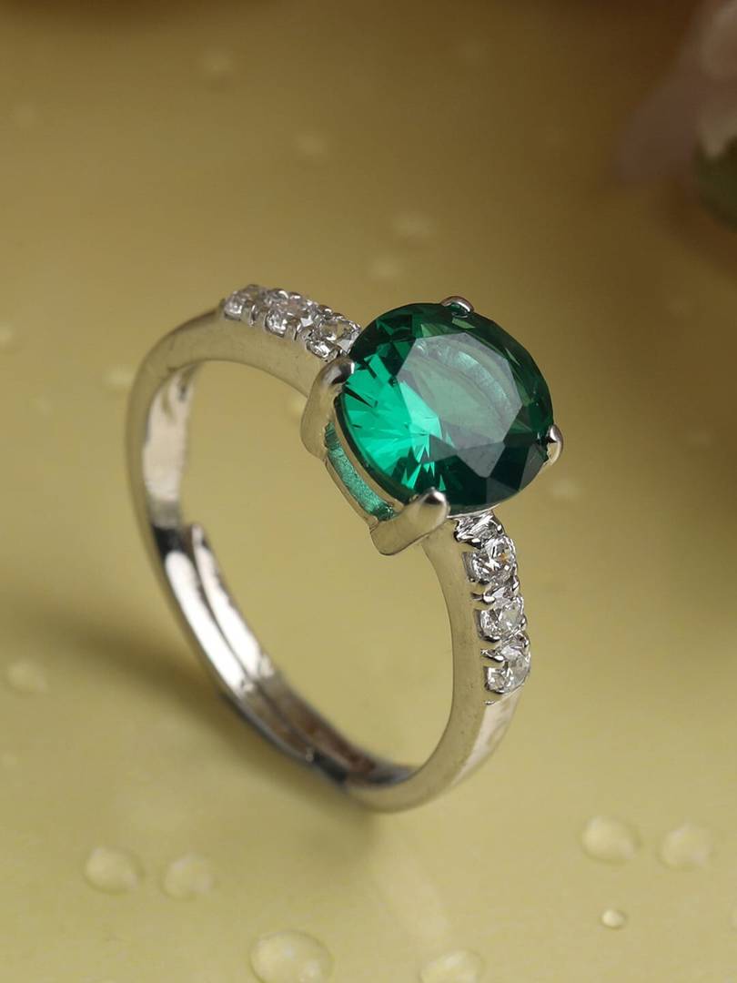 Capilite American Diamond Silver Ring Alloy Diamond Silver Plated Ring