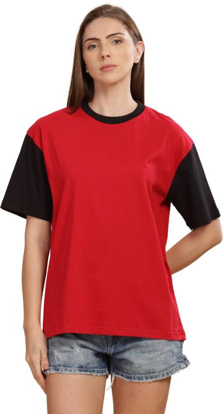 Experience the ultimate comfort and style with our Women's Oversized T-shirt in a striking Solid Plain Red Black colour. Crafted from premium 180 GSM preshrunk fabric, this t-shirt ensures a perfect fit that lasts through countless washes. The vibrant colour is colour-fast, ensuring long-lasting vibrancy, while the oversized fit offers a relaxed and trendy look. Whether you're lounging at home or stepping out for a casual day, this t-shirt is a versatile addition to your wardrobe. Pair it with your favourite jeans or shorts for an effortlessly cool ensemble. With its exceptional quality and timeless design, this t-shirt is a must-have for every fashion-conscious individual.