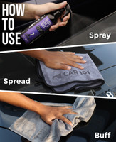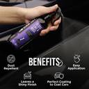 Featuring an easy-to-use spray-and-wipe formula, this car polish simplifies the process of achieving a high-gloss finish. You can shake the bottle well and spray a small amount onto the microfibre towel and the panel. Spread the coating evenly in a cross-hatch pattern to ensure full coverage. Then, you can buff off any excess using the dry side of the towel in gentle circular motions until the surface feels smooth and slick. Repeat the process one panel at a time for the great results.