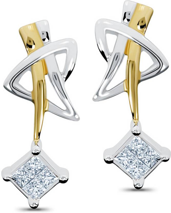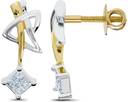A unique and playful pair of duo-tone earrings with four invisibly set princess diamonds - set a new trend at college!