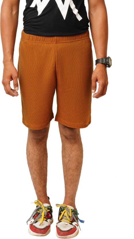 CARBON BASICS Self Design Men Orange Regular Shorts