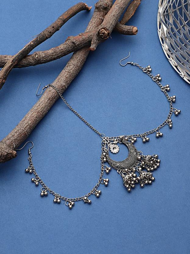 This Oxidised Traditional Black Maangtikka for Women with Antique Design is made of Brass. Women love jewelry; specially traditional jewelry adore a woman. They wear it on different occasions. They have special importance on ring ceremony, wedding and festive time. They can also wear it on regular basics. Make your moment memorable with this range. This jewel set features unique one-of-a-kind traditional embellishes with an antic finish.