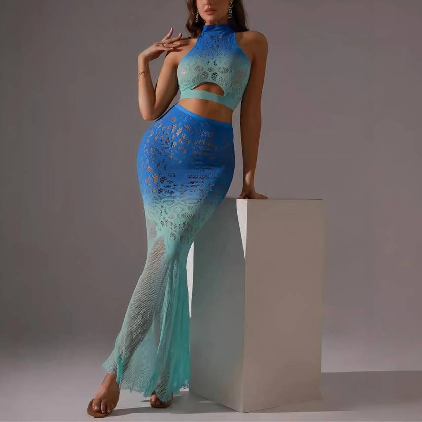Lace Two-Piece Lingerie Set, Halter Crop Top with Cut-Out Detail and Long Skirt, Babydolls Night Dress