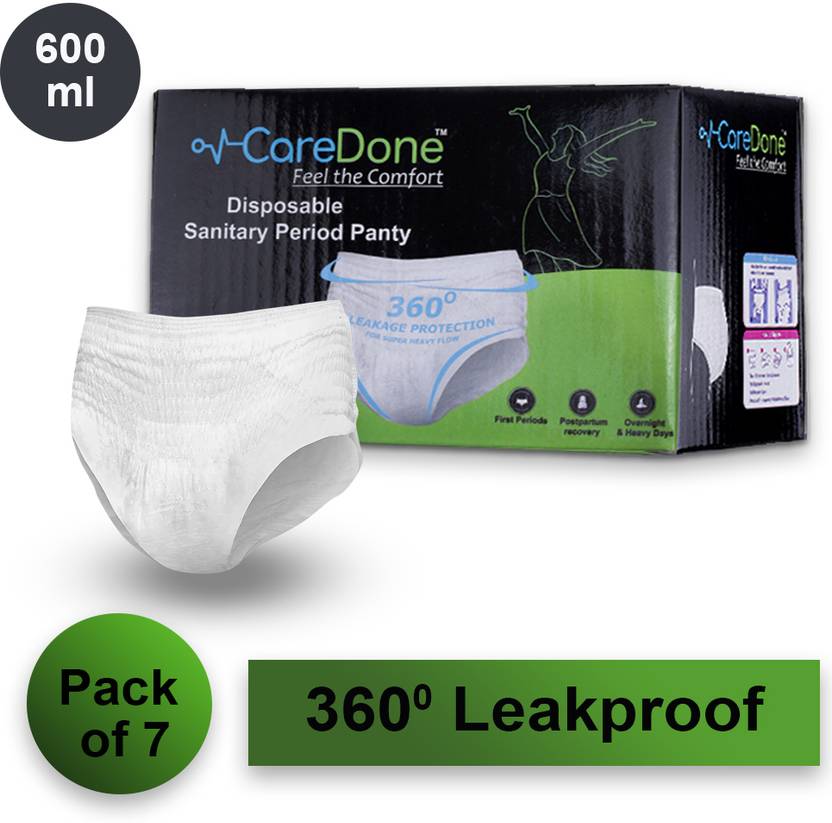 CareDone Disposable Period Panty (or Menstruation Disposable Panty) is designed for maintaining hygiene during menstruation days. These are specially designed panties and are fitted with a Super absorbent sanitary Pad. With CareDone disposable panty one can experience carefree menses without worrying about staining and losing regular inner or outerwear. CareDone Disposable panty not only ensures comfort and hygiene but also provides an additional prevention layer. The product is suitable for Teenagers, Young Adults, Mothers, to be Mothers, and Women with Peri-menopausal heavy periods. Untimely dysfunctional uterine bleeders (DUB) can also use these regularly. Without worrying about washing/cleaning or storage, It can be worn as a regular conventional panty and is a handy essential for traveling, vacations, trekking, camping, overseas trips, hospital stays, spa & herbal treatments, workout & yoga.