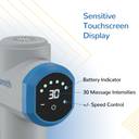 This massager allows you to control the intensity of your massages with just a single touch. It comes with 20 different intensity levels (1800 to 3300 strokes per minute) to choose from according to your preference. You can follow the steps below to use this massage gun as per your needs.