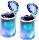 carfrill Auto Ashtray With LED Light Mini Car Trash Can, Portable Lid, for Car cup holder Silver Plastic Ashtray (Pack of 2)