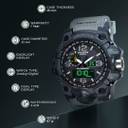 Featuring a digital analogue display, this watch combines traditional analogue hands with a digital display, offering versatility and functionality. Analogue hands indicate time classically, while the digital display provides additional features like a stopwatch, alarms, and dates. It's ideal for those who appreciate the timeless appeal of analogue watches but also seek the convenience of digital technology.