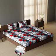 CARLTON LONDON Polyester Queen Fitted (Elastic) 180 TC Geometric Bedsheet (Pack of 1, Beige)
