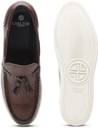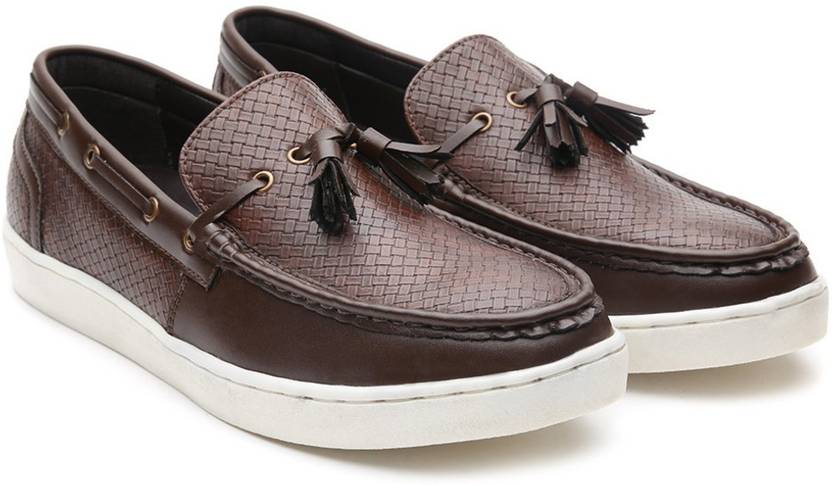 A pair of round-toe coffee brown boat shoes, has regular styling, slip-on detailLeather upperCushioned footbedTextured and patterned outsole. Expand your trendy shoe collection with these comfy Carlton London casual shoes. Style this coffee brown pair with dark denims and a graphic tee for a chill look for the weekend.