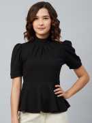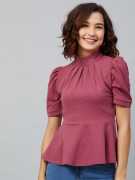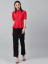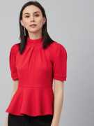 CARLTON LONDON Casual Half Sleeve Solid Women Red Top