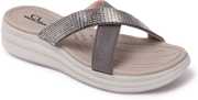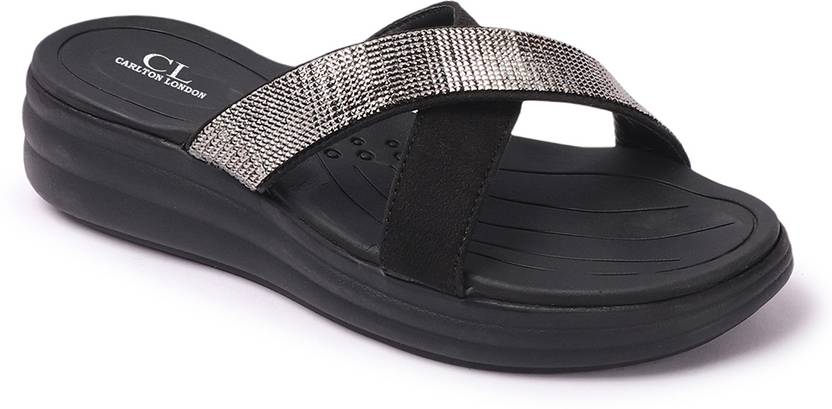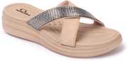Add a touch of subtle sparkle and comfortable elevation to your casual look with the Carlton London Women's Glitter Crisscross Wedge Slides. These stylish mules feature two straps: one with a shimmering glitter finish and the other in a smooth, contrasting material. The crisscross design provides a secure and fashionable fit, while the subtle wedge heel offers a gentle lift for all-day comfort. The cushioned footbed ensures a comfortable step, making these slides perfect for relaxed outings, errands, or adding a hint of glamour to your everyday wear.