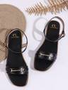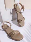 Step into understated elegance and comfort with these women's chic flat sandals. Featuring a smooth finish and a broad strap across the forefoot adorned with a subtle metallic accent, these sandals offer a refined and secure design. An adjustable ankle strap with a buckle closure ensures a customized and comfortable fit. The subtle square toe and flat sole make them perfect for casual outings, daytime events, or adding a sophisticated touch to your everyday looks.