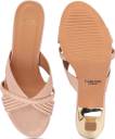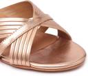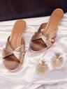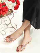Step into effortless elegance with these stylish slip-on .Sandals Designed for all-day comfort and chic flair, they feature a graceful kitten heel with a subtle metallic accent for a touch of polish. The open-toe upper showcases an eye-catching crisscross strap design, crafted from multiple narrow bands to create a textured and flattering look across the foot. The metallic finish of the material catches the light beautifully, making these sandals perfect for both casual outings and dressier occasions. Their easy slip-on style ensures you can quickly add a sophisticated finish to any outfit.