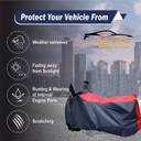 BIKE BODY COVER If you are looking for strong, effective and all weather BIKE body covers for your vehicle, this is the right product. These BIKE covers are very tough and long lasting. All-weather BIKE covers are designed to protect your vehicle against harsh outdoor conditions. Elegant Red & Blue Color. Premium fabric out-performs any other expensive/branded vehicle cover. These special BIKE covers are used to preserve a vehicle's paint and to safeguard it from dings, dents and dust. These BIKE covers fit your vehicle with style and precision. Uses reinforced side grommets for cover tie-down UV stable materials ensure a long life. FEATURES High Quality imported Fabric, Water-resistant bike body cover protects from All-weather, Dust, Dents and Dings; UV Ray protection (UV rays cause paint fading); Very light and eaJLy handled; Matches bike body profile perfectly. Clamp mechanism. Hi-performance fabric naturally resists moisture, fungus and expels stale odour. Ultrasonic welding seals seams tight and securely (other covers use common thread) keeps your vehicle cooler, dry and dust free, it remains unaffected by climatic conditions.Whether it's a motorcycle or a scooter, the universal fit accommodates various models and sizes, offering full-body protection. Some covers include reflective strips for night visibility and added safety. Lightweight and foldable, the cover is easy to carry and store when not in use.A Two Wheeler Cover is an essential accessory for protecting your bike or scooter from external elements like dust, rain, sun, and scratches. Made from high-quality, waterproof, and UV-resistant materials, this cover ensures your vehicle stays clean and rust-free, even when parked outdoors for extended periods. Designed for a snug fit, many covers come with elastic hems or buckle straps that keep them securely in place even during strong winds.