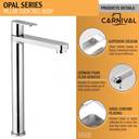 CARNIVAL Premium Quality Brass Tall Pillar Cock Tap For Wash Basin | 10" Inch Extended Tall Body Basin Pillar Tap for Wash Basin with Chrome Finish| Counter Table Top Pillar Tap Faucet (Deck Mount Installation Type)