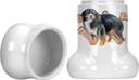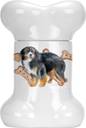Made from Ceramic Do you think you dog is spoiled enough? Not unless they have their own bone shaped treat jar. This cookie jar stands 9 inches tall and measures 6 inches wide at the base. It is made from ceramic and decorated with our full color artwork. This treat jar is dishwasher safe. Give this at a gift to a groomer, dog walker, pet sitter or buy a couple for yourself.