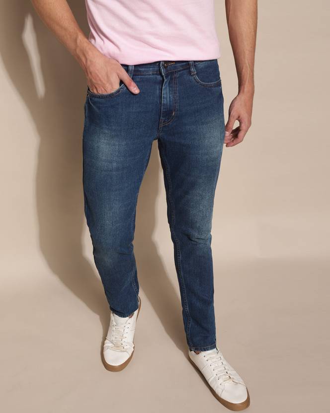 Men Tapered Fit Mid Rise Blue Jeans