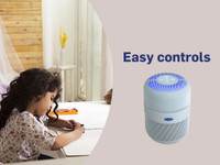 This air purifier comes with a 4-step air quality color indicator which helps you keep a check on the quality of the indoor air. Also, this room air purifier comes with several convenient controls, such as a switch on/off button, fan speed, child lock, timer, and filter replacement reminder.