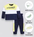 Introducing our Carrydreams Cotton Comfort Set, a delightful combination of comfort and style for your little ones aged 1 to 7 years. This set includes a vibrant yellow and navy blue full sleeves sweatshirt and joggers, meticulously crafted from pure cotton sinker fabric with a weight ranging from 170 GSM to 180 GSM. Ideal for all seasons, this set ensures your child stays snug and stylish throughout the year, whether it's a chilly winter day or a breezy summer evening.