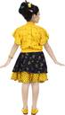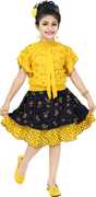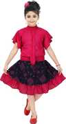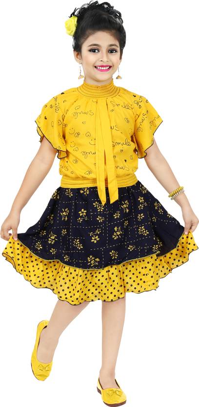 Enhance your daughter’s wardrobe with this trendy skirt-top set from Chandrika that offers both style and comfort. The Fit and flare top is adorned with cute frills and buttons for design. The Skirt has a mid length flare with foliage print. This unique combination is going to add an oomph factor to your daughter’s style. It is a must have for this festive season.
