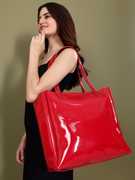 introducing our spacious tote bag, crafted from lustrous synthetic leather that gleams with a sophisticated shine. This elegant accessory combines functionality with fashion, featuring a generously sized main compartment perfect for carrying your essentials and more. The smooth, reflective surface of the synthetic leather adds a touch of modern glamour, while the sturdy handles ensure comfortable carrying. Whether you're heading to work, running errands, or enjoying a day out, this tote bag seamlessly blends style and practicality, making it a versatile addition to any wardrobe.