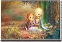 Cartoon boy girl storytelling Fine Art Print (12 inch X 18 inch, Rolled)