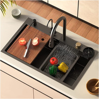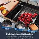 With its versatile design, this kitchen sink adapts to your diverse cooking needs. Whether you're washing dishes, rinsing vegetables, or preparing meals, it provides the functionality you require. The included accessories, such as the fruit basket, cutting board, and glass rinser further enhance its versatility, making it a valuable addition to any kitchen space.