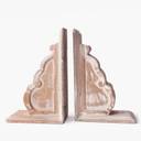 Featuring clean hand-carved patterns inspired by traditional Indian architecture, wrapped in a distressed white paint finish, these wooden corbel bookends beautifully unite modern and vintage aesthetics. Handmade in wood, these rustic pieces seamlessly blend with all decor accents. You can use these diverse accents for accentuating your wall shelves, entryway, or garden interior by installing them on your walls or using them as bookends for decorating your books.
