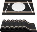 CASA FURNISHING Rectangular Pack of 6 Table Placemat (Black, Beige, PVC)