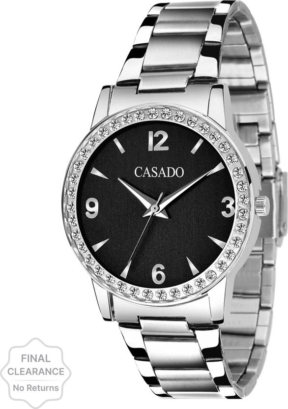 Classy Black Dial With Premium Diamond Studded Stainless Steel Case for Uptown Girl's