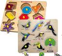 CASADOMANI Combo Wooden Birds Names Blocks+Geometric Shape Matching Puzzle Color&Shape Toy (2 Pieces)