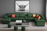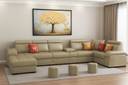 Casaliving Emerson Modern U-Shaped Sectional Sofa Set 9 Seater, Sofa Couch with 3 Puffy Leather 9 Seater Sofa (Finish Color - Cream, Pre-assembled)