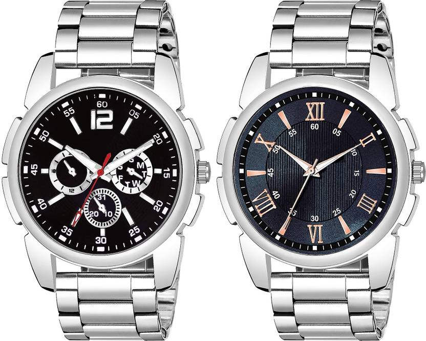 Analog Watch - For Men Pack Of 2 Stainless Steel Strep Analogs Watch For Boy And Men