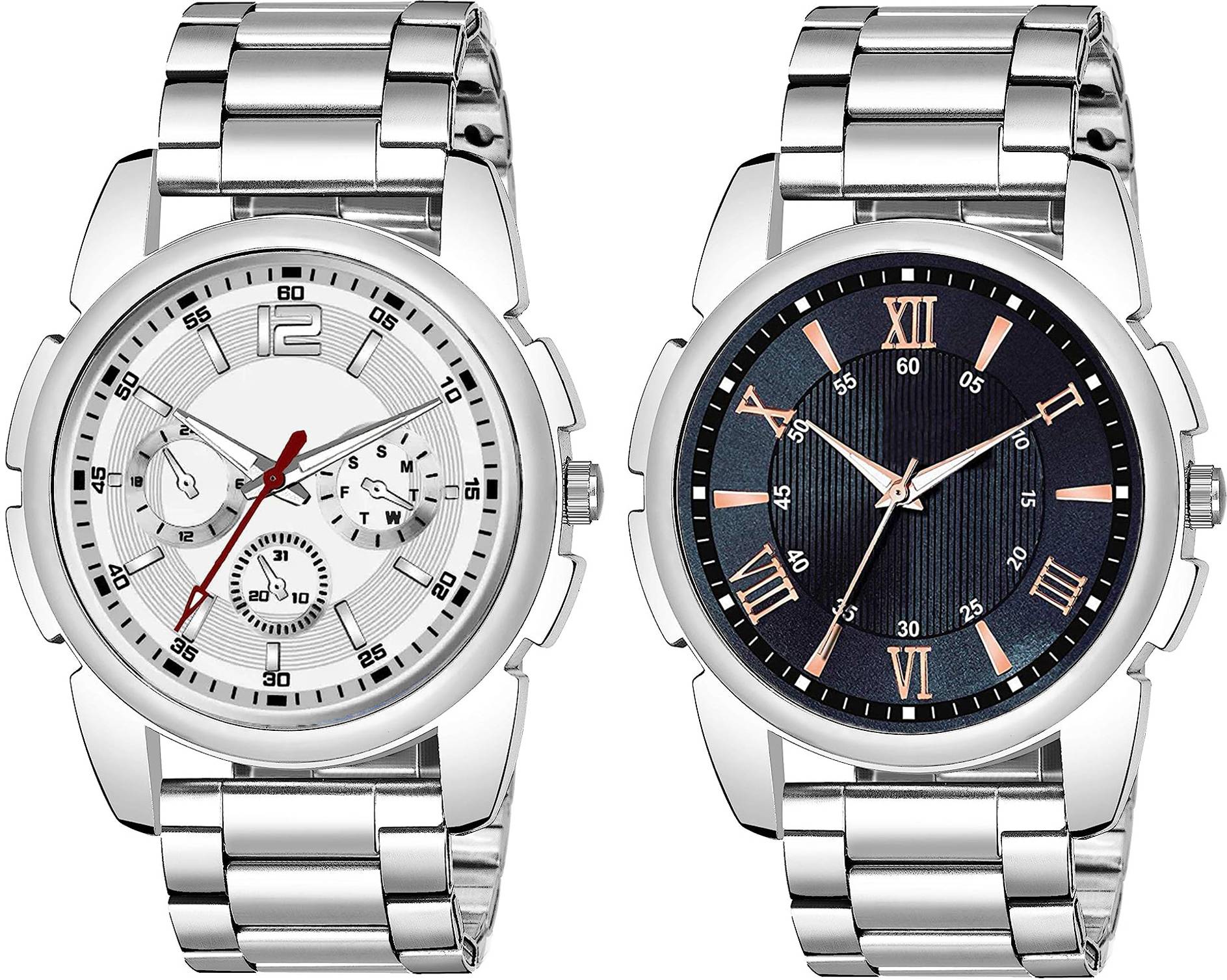 Analog Watch - For Men Pack Of 2 Stainless Steel Strep Analogs Watch For Boy And Men