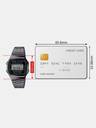 Resin Glass, Gray ion plated band, Electro-luminescent backlight, 1/100-second stopwatch, Daily alarm, Hourly time signal, Auto-calendar (28 days for February), 12/24-hour format, Regular timekeeping: Digital: Hour, minute, second, pm, date, day, Accuracy: 30 seconds per month