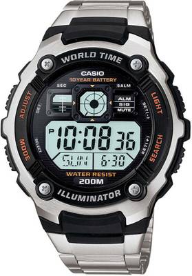 excellent functions and nice looking... has scratch proof glass and 10 years of working battery is strong and light weight.Worth the price is water resistant and stylish good looking metallic watch very easy to handle and use also has world time.