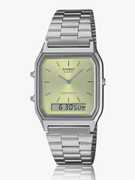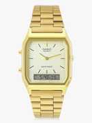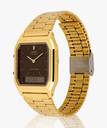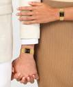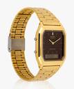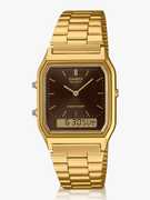 A vintage look in classic colors case and band in metallic gold finish complemented by a sunray dial in brown. Retro simplicity meets modern functionality in an analog watch with small digital window for the info you need at your fingertips. A versatile, elegant design to complement every occasion, from dressy formal events to casual outings.