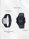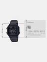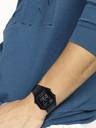Case / bezel material: Resin Adjustable Clasp Stainless Steel Band Resin Glass Black ion plated band 50-meter water resistance LED backlight 1/100-second stopwatch Measuring capacity: 59'59.99'' Measuring modes: Elapsed time, split time, 1st-2nd place times Daily alarm Hourly time signal Auto-calendar (set at 28 days for February) 12/24-hour format Regular timekeeping: Hour, minute, second, pm, date, day Accuracy:30 seconds per month Approx. battery life: 7 years on CR2016